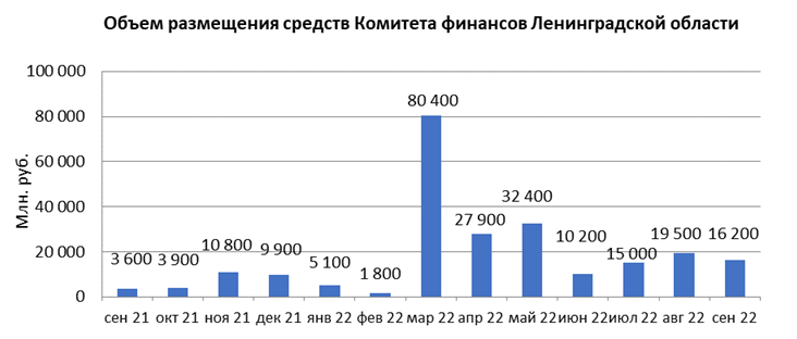 В сентябре 2022 года объем размещения средств Комитета финансов Ленинградской области в депозиты кредитных организаций с использованием информационных программно-технических средств СПВБ составил 16,2 млрд. руб., в августе 2022 года – 19,5 млрд. руб.