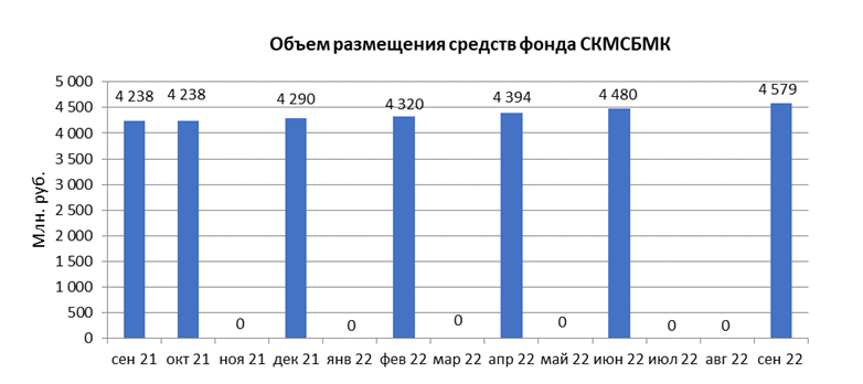 В сентябре 2022 года объем размещения средств некоммерческой организации “Фонд содействия кредитованию малого и среднего бизнеса, микрокредитная компания” в депозиты кредитных организаций с использованием информационных программно-технических средств СПВБ составил 4,6 млрд. руб., в августе 2022 года размещение средств не осуществлялось.