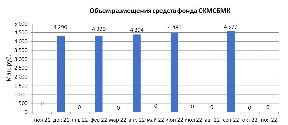 В ноябре 2022 года объем размещения средств организации Пенсионный фонд России в депозиты кредитных организаций с использованием информационных программно-технических средств СПВБ не осуществлялось, в октябре 2022 года – 0,4 млрд. руб.